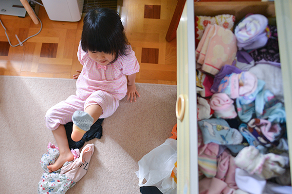 生活面では、自分でパンツやズボンをおろしてトイレに行ったり、自分で服の脱ぎ着ができるようになったりします。