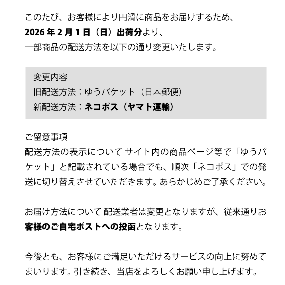 【重要】商品の配送方法変更のお知らせ