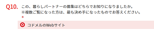 ご注意:申込ページのQ10で「コドメルのWebサイト」を選択いただいた方が対象となります。